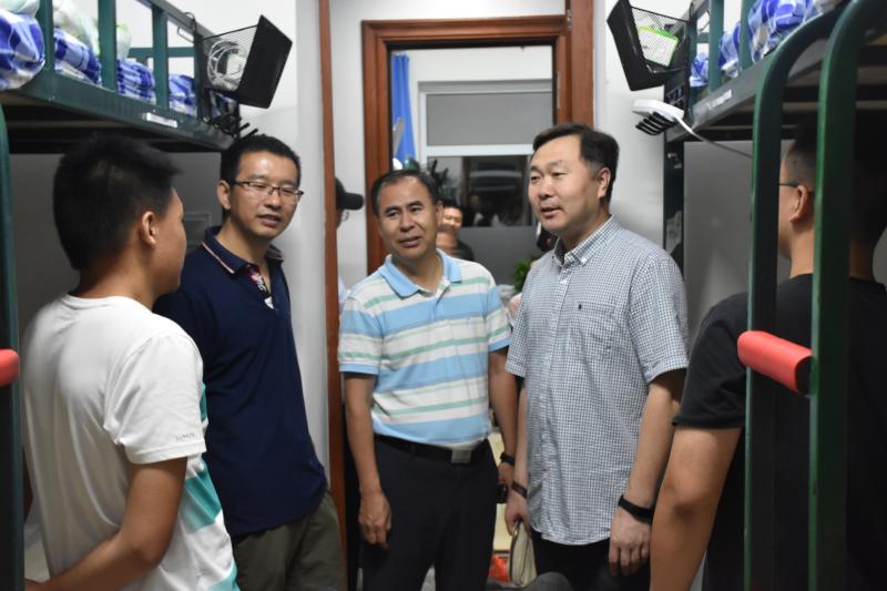 院长刘雅文,党委书记赵国利,副院长于洗河、魏国志、寇长贵,党委副书记兼副院长、2019级新生辅导员刘丽及全体辅导员,共同来到2019级新生宿舍进行走访慰问,为新生们带来了来自学院的温暖。