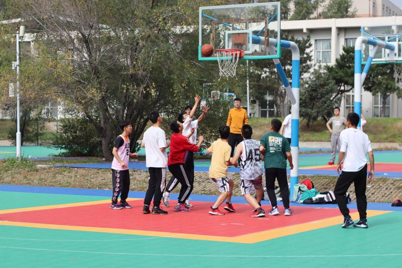 中心校区篮球场组织了2020级新生篮球赛。比赛双方分别是由2020级新生组成的新生联队和由其他高年级同学组成的高年级联队。
