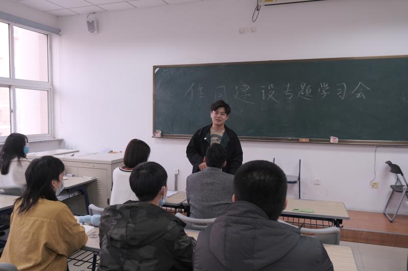 会议伊始,主席团成员宫千惠同学带领参与成员们宣读并深入学习了《关于学联学生会工作人员改进作风服务同学的若干规定》以及《关于落实共青团和学联对高校学生会(研究生会)指导管理责任的若干规定(试行)》两个文件。各参会人员学习到,学生会应坚持正确的政治方向,聚焦服务同学的职能,进一步发挥好学校联系同学的桥梁和纽带作用。同时要求建立好学生会工作人员行为规范,防止学生会出现脱离同学的功利化、庸俗化等倾向。进一步加强学生会深化改革,优化组织构架和规模,及时与学校沟通,报告有关情况。对学生会工作人员的管理要求总结为六点:恪守学生本分,牢记服务宗旨,永葆理想情怀,勤勉务实做事,营造平等氛围,摒弃庸俗习气。而后,主席团成员田宏远同学以及卞骏业同学关于学生会工作人员的学习情况以及作风建设精神要求发言,希望各位工作人员能够切实做到坚守服务初心,恪守学生本分,同时以自身做好表率作用,引导同学们努力学习,不负大好时光。
