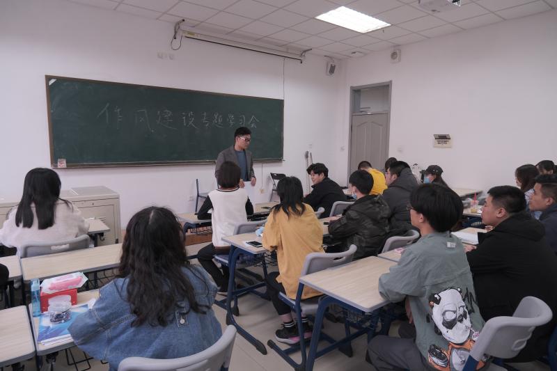 学生会于新民校区第二教学楼2310教室召开改进作风服务同学工作推进会,全体主席团成员和学生会各部门工作人员加了此次会议。