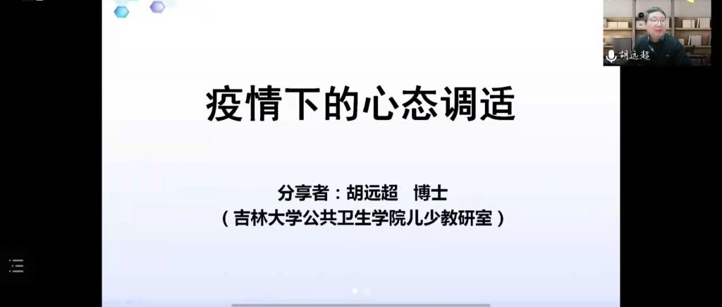 封寝不封心,陪伴暖人心。此次“疫情下的心态调适”线上心理讲座,让老师和同学们学习了在疫情期间如何调适心态,以更加积极的心态面对当前的疫情。疫情当前,病毒无情,陪伴暖心,相信通过此次线上心理讲座,同学们能整理好自己的心态,更加积极的生活和学习。