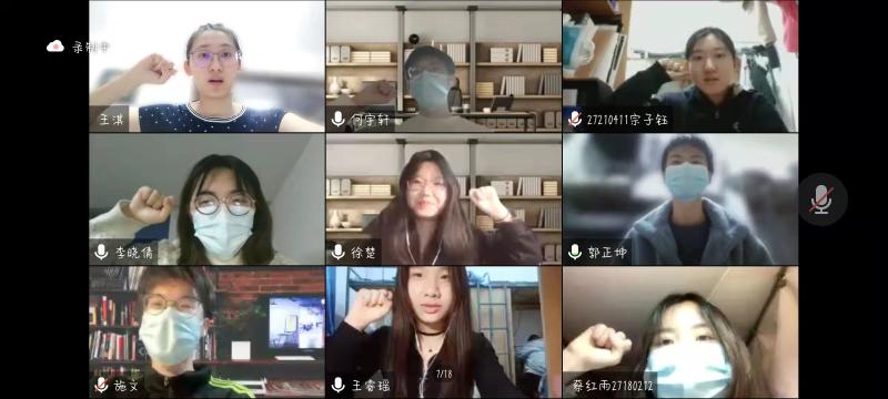 最后,由本科生党员代表苗雨萌带领与会的各位党员重温入党誓词。即便隔着屏幕,各位党员纷纷坚定举起右拳,铿锵有力地宣誓表达着大家战胜疫情的决心。疫情当前显本色,艰险时刻勇担当。相信党员群众们勠力同心、同舟共济,定能打赢疫情防控阻击战!