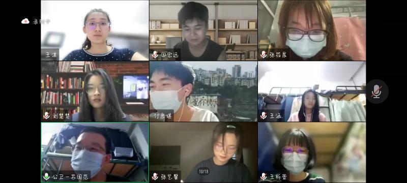 首先,通过短视频及近期大家的所见所感,在当前长春市疫情防控所面临的严峻挑战下,七位在抗疫过程中表现突出的本科生党员纷纷进行发言。他们有为封寝期间为同学们送餐送水甘于奉献的党员志愿者,更有志愿支援长春市疾控中心工作的党员志愿者。“能为同学们服务,让同学们每日及时吃上暖饭是一件特别有成就感的事”。“青年党员要向党员前辈们学习,他们不怕苦不怕累,为学校的疫情防控工作贡献力量”。学院第一时间组建了四支临时党支部,由党员先锋突击队带头,引导大家科学抗疫。