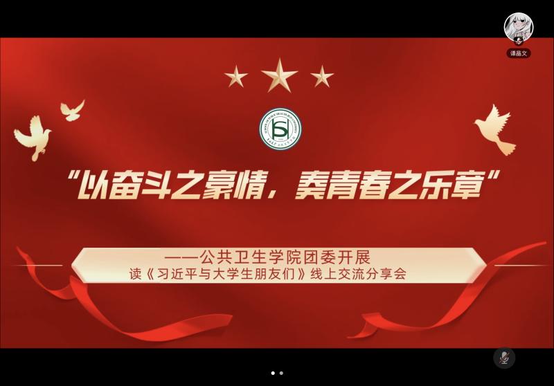 公卫团委将持续引领各级团支部把学习《习近平与大学生朋友们》与学习贯彻党的十九大和十九届历次全会精神相结合,以“青年大学习”行动为主线,运用好网络新媒体,广泛开展学习宣讲活动,将习近平总书记关于青年工作的重要思想再领会、再深化,团结带领公卫青年团员,为加快建设幸福美好生活贡献青春力量。