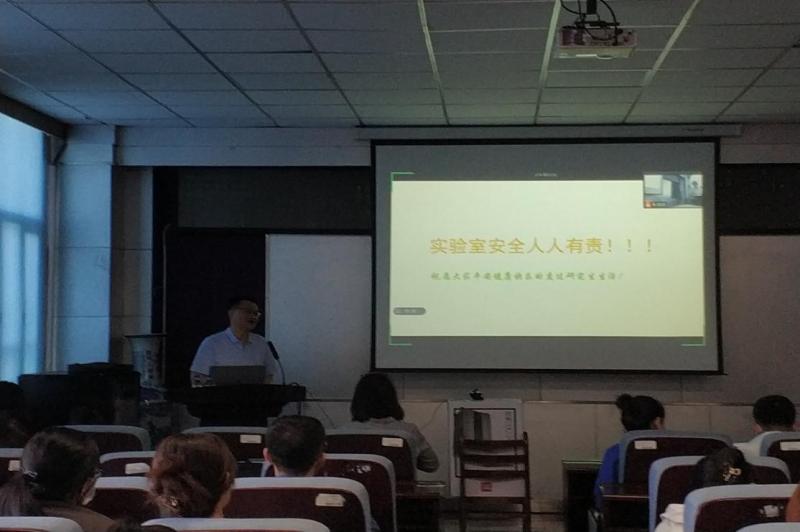 In order to improve students' awareness of experimental safety and strengthen experimental safety management, our college held a lecture on laboratory safety training in the conference hall on the third floor of our college on the afternoon of June 3. Mr. Zhao Shuhua of preventive medicine experimental teaching center and Mr. Zhen Qing of epidemiology and health statistics teaching and Research Office were invited to explain laboratory safety precautions and protective measures to all graduate students (Masters and doctors) of natural sciences in our hospital. In response to the novel coronavirus pneumonia control requirements, the seminar is divided into two parts: online and offline.