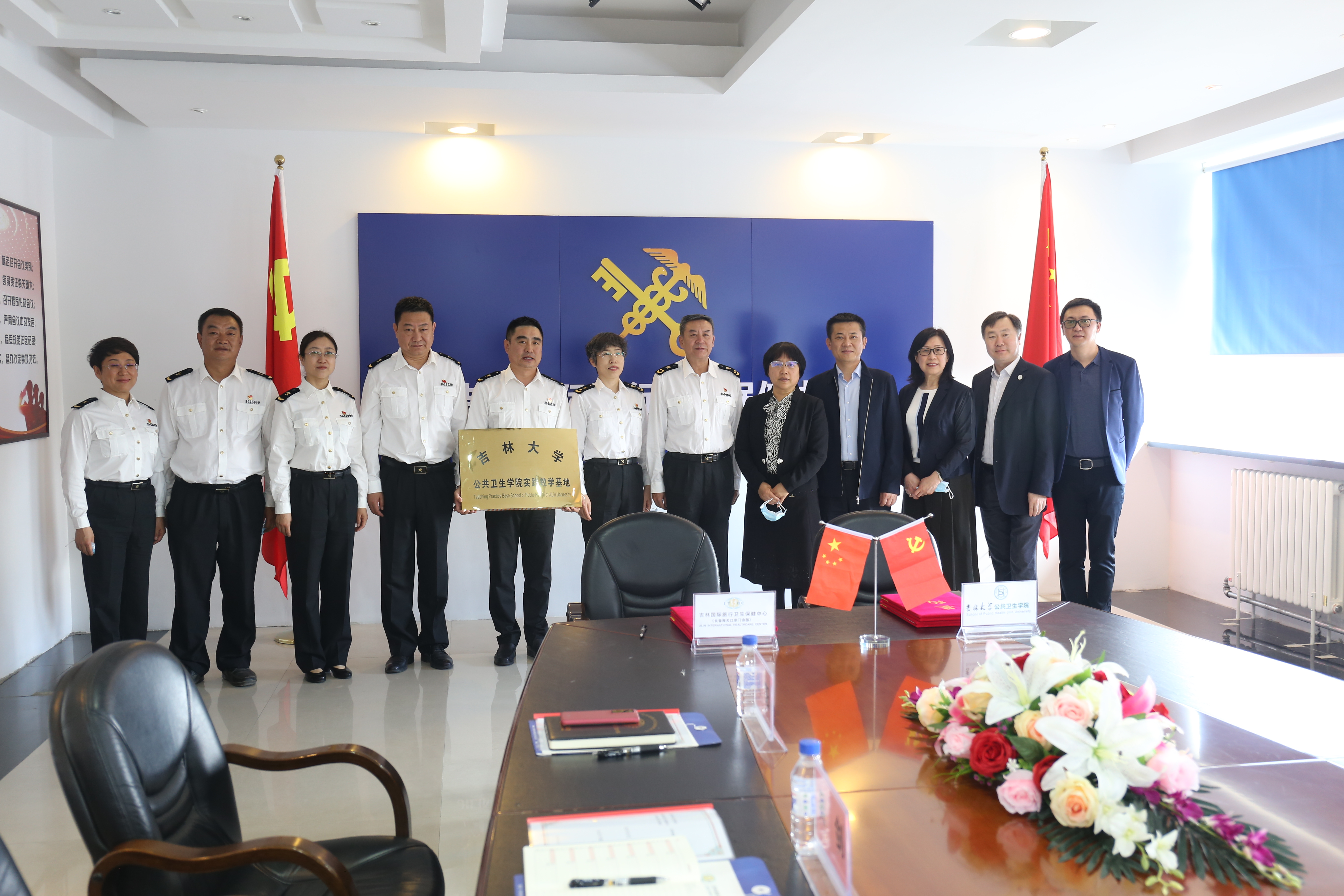 In order to strengthen the undergraduate practical teaching, cultivate the undergraduate practical ability and innovative consciousness, and comprehensively improve the quality of teaching and personnel training, the school of public health of Jilin University and Jilin international travel health care center (Changchun customs port outpatient department) solemnly held the listing ceremony of the practical teaching base on June 4, 2021. The ceremony was attended by Xie Bing, deputy director of Changchun customs, Shao Liyun, director of health inspection department of Changchun customs, Zheng Changbao, director of Jilin international travel health care center, Liu Qi, deputy director of health care center, Wu Jian, deputy director of health care center, Zhao Dali, deputy director of health care center, and Liu Yang, Secretary of Discipline Committee of health care center; Zhao Guoli, Secretary of the school of public health, Liu Yawen, President, Kou Changgui, vice president, Ye Lin, director of the Department of preventive medicine, and Li Peng, director of the teaching office.