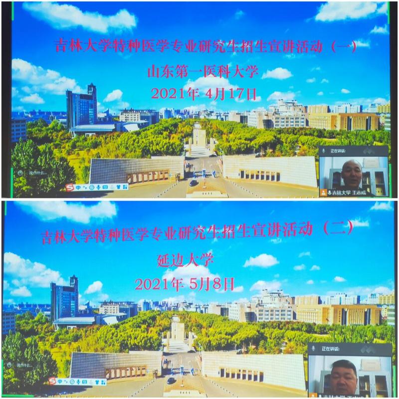 The online publicity activities in 2021 enabled students of different majors in Colleges and universities to have a clearer understanding of the postgraduate entrance examination, further understand the relevant research fields of special medicine, enhance the students' learning initiative and confidence in applying for the examination, and also took a solid step for the development of the first-class discipline of special medicine in the school of public health of Jilin University. Through the joint efforts of the publicity work of "going out, please come back", we strive to attract more excellent students to Jilin University and add luster to the construction of first-class discipline of special medicine in the school of public health.