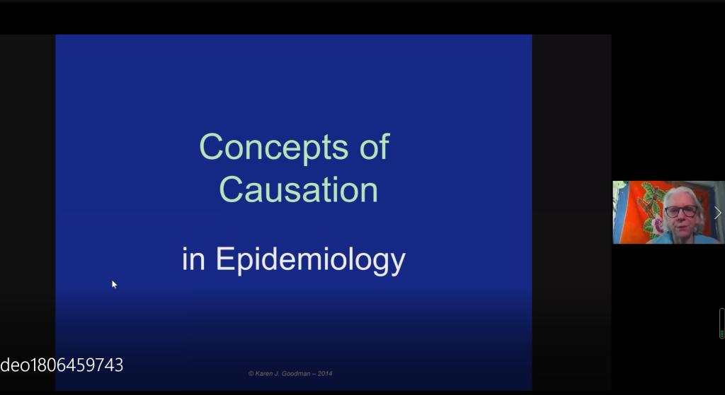 This lecture invited Karen J Goodman, a tenured professor at the University of Alberta, Canada. Professor Karen J Goodman taught the students the basic concepts of causal inference in epidemiological research and the basic methods of disease identification of causal relationship between risk factors. More than 40 senior undergraduate and graduate students attended the online lecture. This online lecture was hosted by Professor Li Hui of the Social Medicine Teaching and Research Office of our college, and invited Professor Ren Shuping of the Environmental Health Teaching and Research Office of our college, Professor Jin Lina of the Epidemiology Teaching and Research Office, and Associate Professor Feng Jia of the Medical Information Teaching and Research Office to stay in the class to ensure the smooth progress of the course.