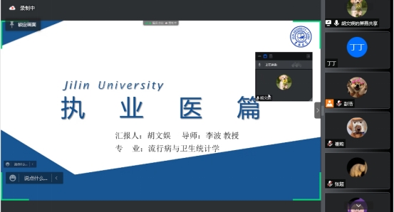 In order to help high-quality employment, empower future development, and improve graduates' employment competitiveness, the College of Public Health of Jilin University held an online experience sharing meeting on the examination of licensed physicians in the afternoon of April 3. The main speaker of this exchange and sharing meeting was Hu Wenyu, a student majoring in Epidemiology and Health Statistics, Grade 2020. Some graduate and undergraduate students of the college attended the meeting.