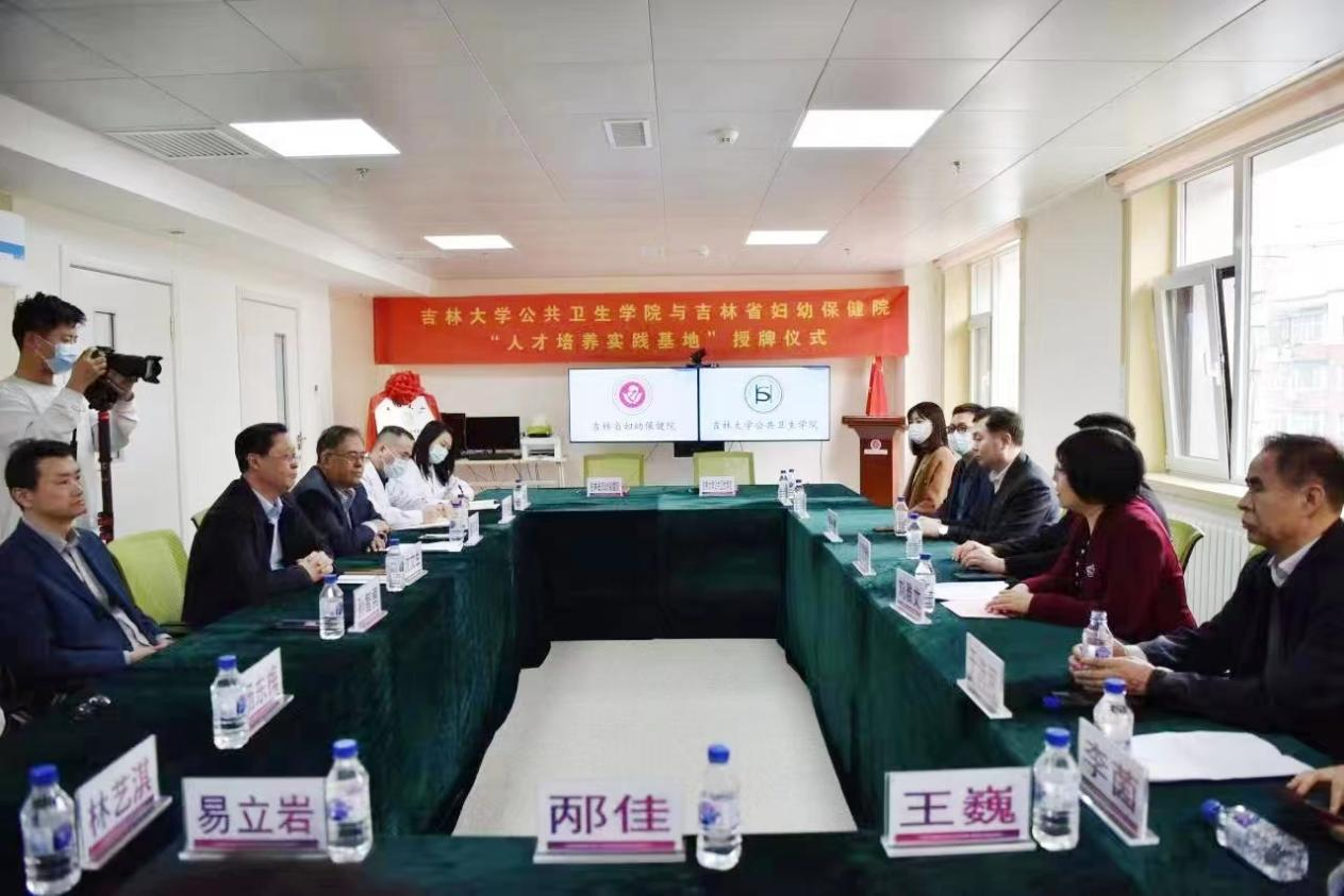 In order to strengthen and standardize the practical teaching work of the college, cultivate students' practical abilities and innovative awareness, and comprehensively improve the quality of teaching and talent cultivation, on the afternoon of March 21st, the signing and awarding ceremony of the talent cultivation practice base jointly built by the School of Public Health of Jilin University and Jilin Maternal and Child Health Hospital was successfully held at Jilin Maternal and Child Health Hospital. Attending this ceremony were Shen Wensheng, the Secretary of the Party Committee of Jilin Maternal and Child Health Hospital, Dong Xiaobin, the Dean, and Sun Zhiyong, the Vice Dean. Zhao Guoli, the Secretary of the Party Committee of the School of Public Health, Liu Yawen, the Dean, Kou Changgui, the Vice Dean, Yu Xihe, the Graduate Commissioner, and relevant department heads from both parties. The ceremony was presided over by Dong Xiaobin, the director of the Maternal and Child Health Hospital.