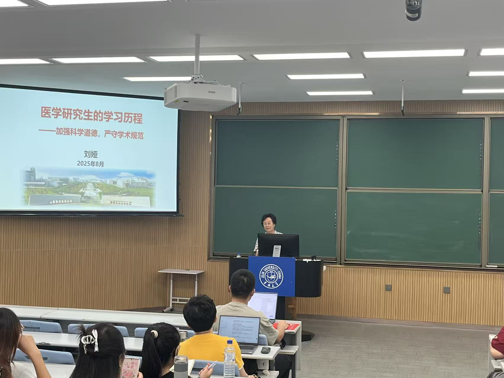 关心下一代委员会常务副主任刘娅老师主讲,学院党委副书记兼副院长于亮出席活动,全体 2025 级研究生新生参会学习。